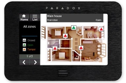 | Ovládací klávesnice se liší způsobem indikace stavů ústředny. Montujeme: Grafické dotykové klávesnice, LED klávesnice ( indikace stavů prostřednictvím rozsvícení LED diod ), Ikonové LCD klávesnice ( indikace stavů prostřednictvím grafických symbolů na LCD displayi ), Textové LCD klávesnice ( indikace stavů prostřednictvím textových zpráv na LCD displayi ), Grafické klávesnice ( indikace stavů prostřednictvím grafického displaye např. zobrazením detektorů v grafickém náčrtu půdorysu objektu ), kombinované klávesnice se čtečkou přístupových karet. |